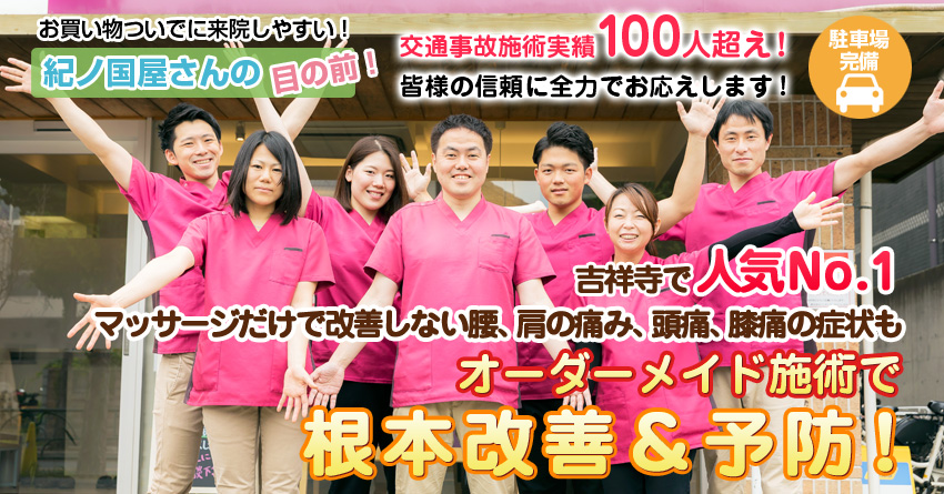 吉祥寺のたかの総合整骨院では、交通事故の治療をはじめ保険のことや法律などトータルでサポートを行わせていただきますので、お気軽にご相談ください。